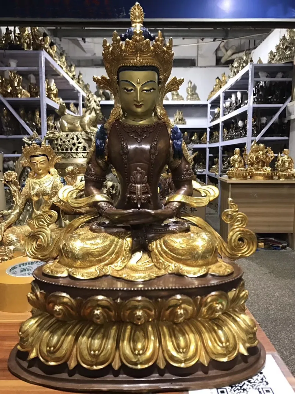 Large 46CM Huge # High-grade quality gilding gold Buddha statue HOME family Temple Tibet Nepal Lotu