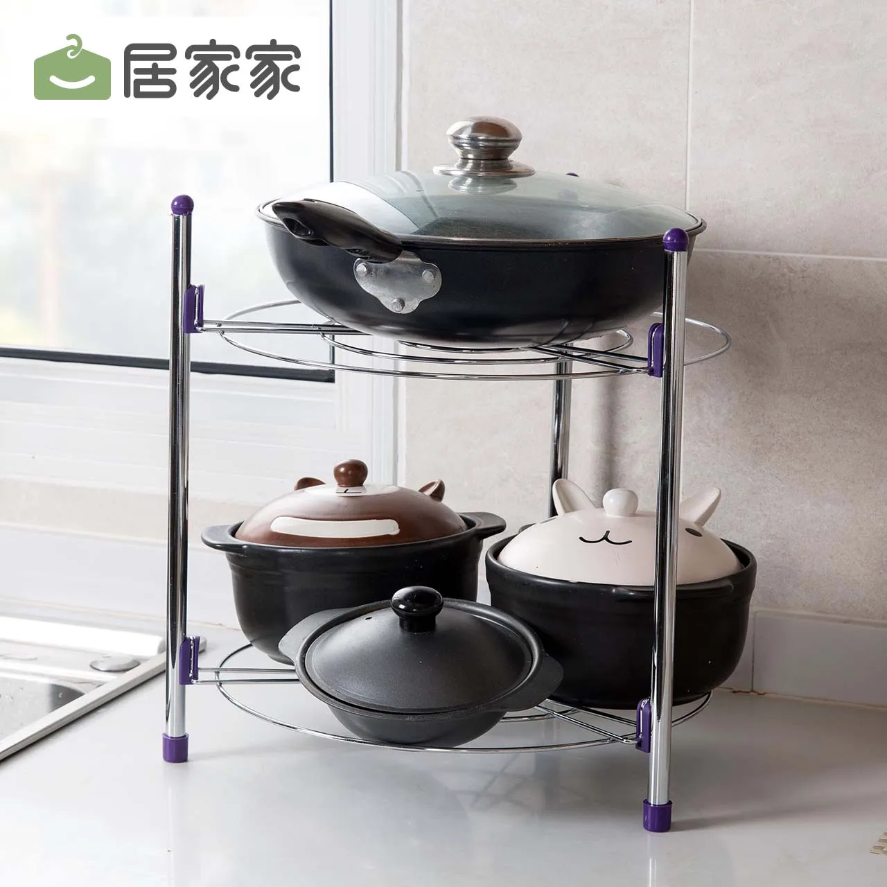 HIGH QUALITY Family Kitchen Countertop Floor Pot Rack Put Pot Receptacle Rack Kitchen Pot Cover Shelf Stock Rack