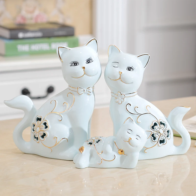 3pcs Cute cartoon ceramic family three cats figurines living room children's room home decoration o