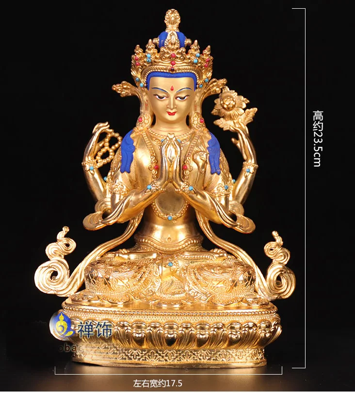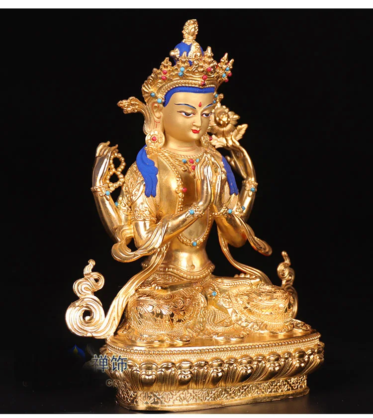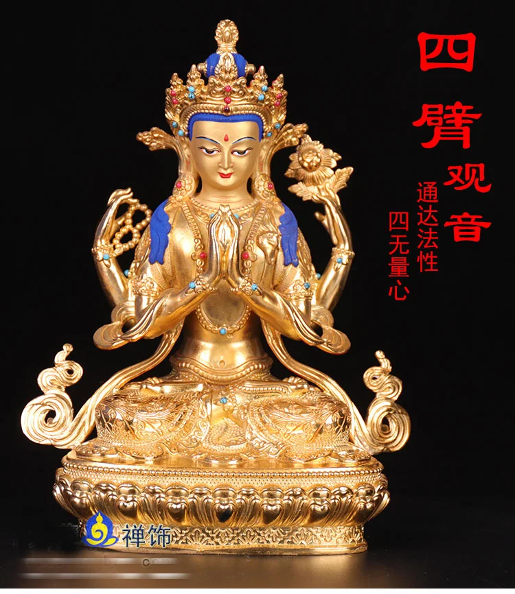 Best Quality 2020 High grade Buddha HOME Family Efficacious Protection-Buddhism gilding 4 arm Guanyin Avalokites