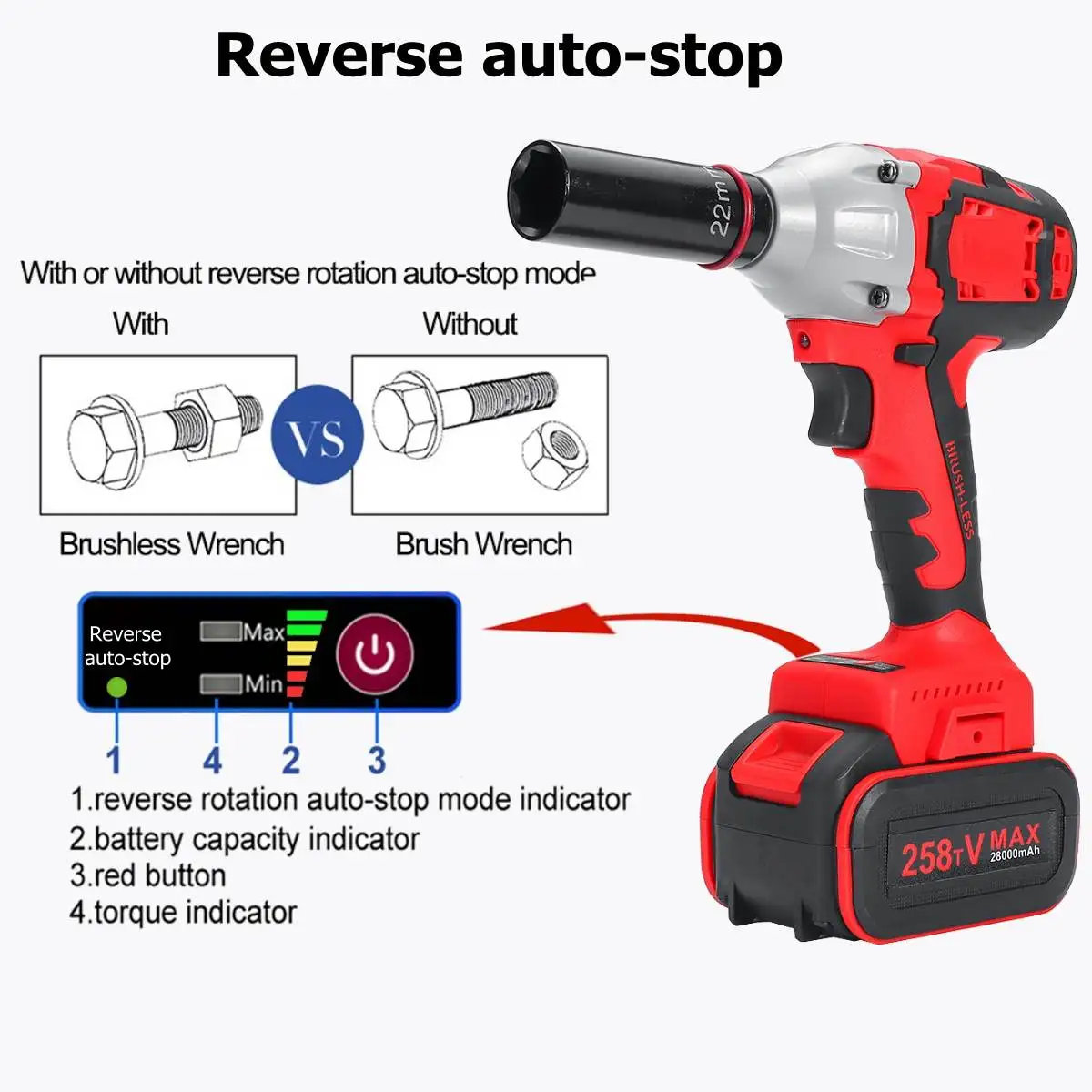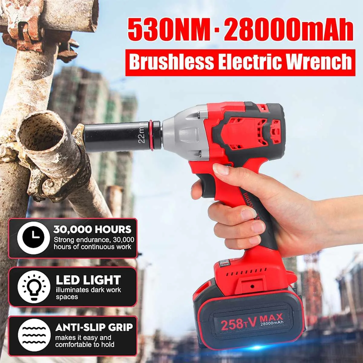 21V 8AH Brushless Cordless Impact Electric Wrench 530Nm 28000mah Torque Household Car/SUV Wheel 1/2