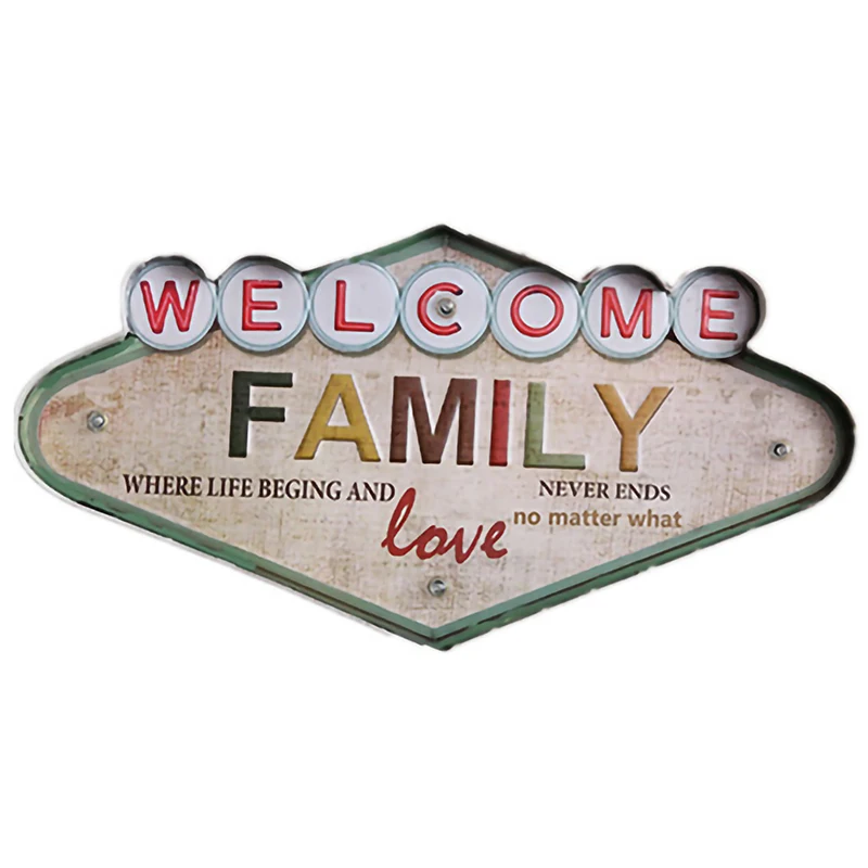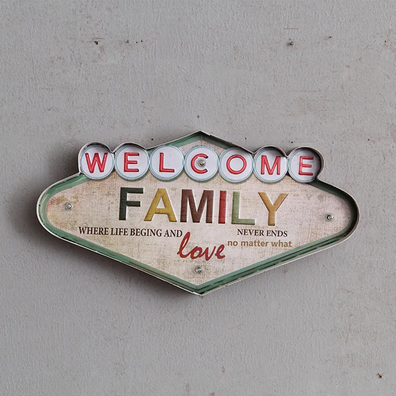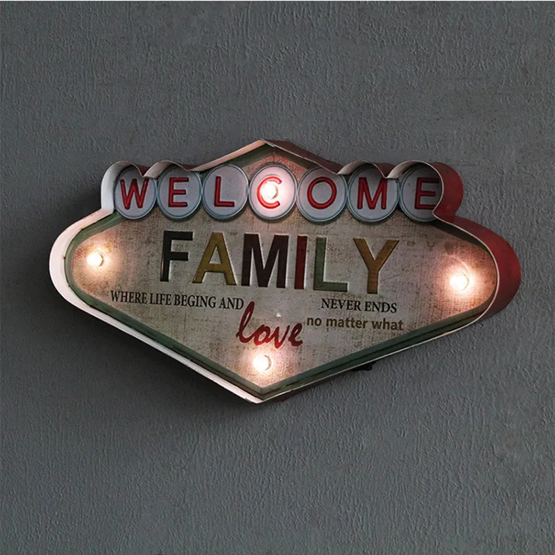 Best American Country Retro Wrought Iron LED Lamp Wall Decoration FAMILY Letter Wall Hanging Personality